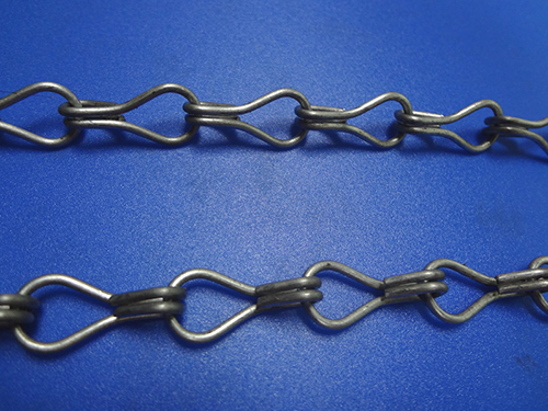 产品的形成:五金首饰品织链条是用铜线丝,铁线丝,不锈钢线丝经过模具织成形的时尚首饰品链条。